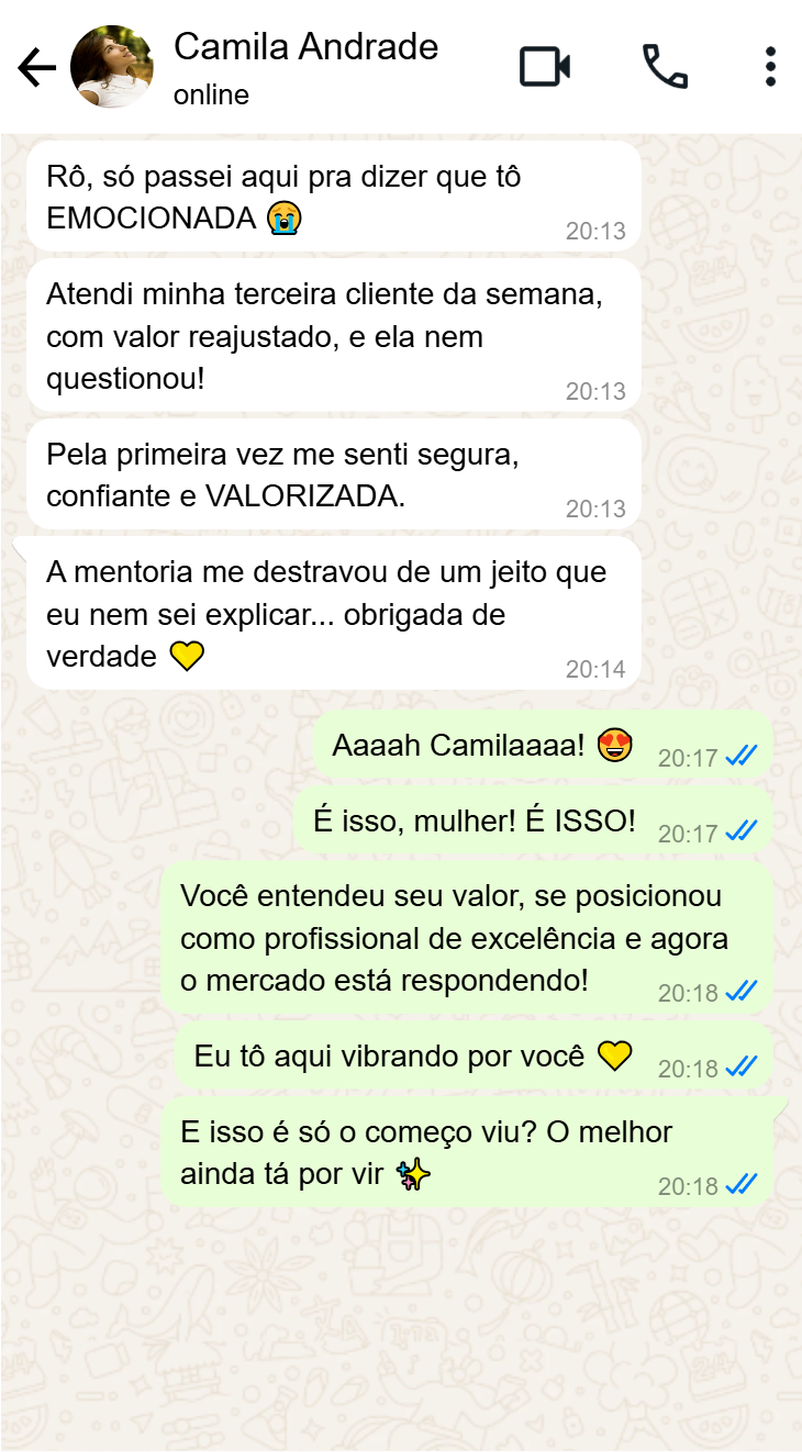 Totalmente. A mentoria foca em posicionamento, faturamento, atração e fidelização — não importa em que fase você esteja.